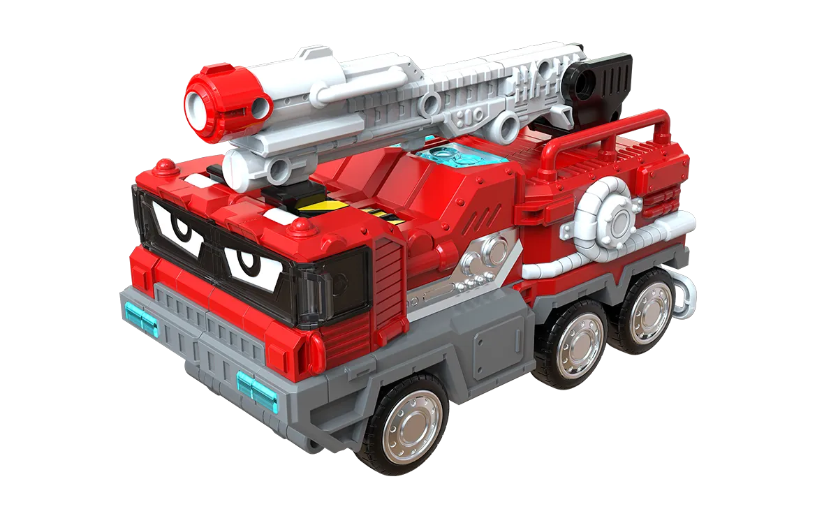 Phoenix Fire is a Metal Cardbot introduced in S1E1, Mystery of the Police Car Robot! that transforms into a fire truck. He worked with Mega Ambler on planet Machina to put out fires, earning the Metal Medal for his bravery;1 however, a crash landing on Earth caused him to become afraid of fire until Jun sealed him with the Metal Breath.